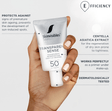 Väritön & huomaamaton, rauhoittava päivittäinen UV -suoja, sisältää CICA eli Centella Asiatica -uutetta.